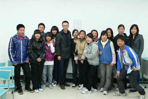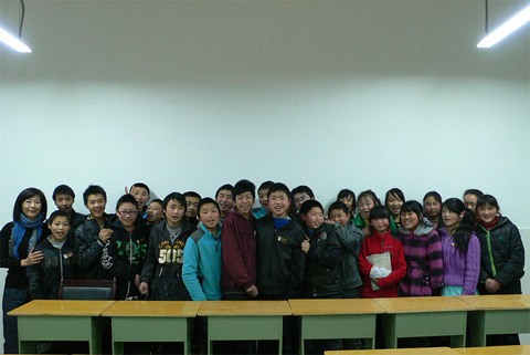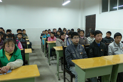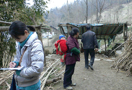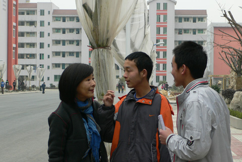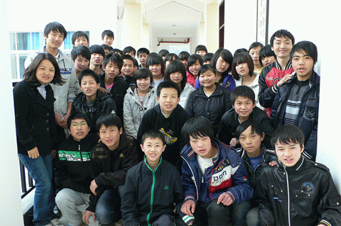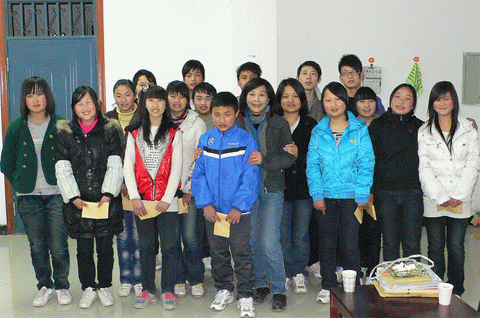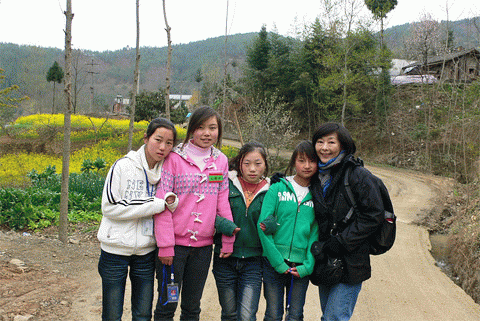 Photo Stories - Spring Semester 2011 - Schools in Qingchuan County and Beichuan County 木鱼新生的家访路上 On the way of our home visit for a new sponsored student in the town of Muyu  志愿者与木鱼的初三学生 Volunteers and the students in 9th grade of Muyu Middle School  木鱼中学的23位新生 23 new sponsored students of Muyu Middle School  高一的高万松是青川中学的体育部长 Gaowansong, now is the head of Sports Department of Qingchuan First High School  志愿者与三锅中学学生 Volunteers and the students of Sanguo Middle School  养父带着辍学的贾光菊回关庄 Has stopped schooling for two weeks, Jiaguangju and her foster father return to Guanzhuang  关庄新生与残疾的妈妈 A new sponsored student and her handicapped mother in Guanzhuang  大家带着自己的座椅到礼堂会谈 Students take their chairs to the auditorium for our meeting  晚自习时间的会谈 Talking with students during the time of self-study  关庄家访路上 On the way of our home visits in the town of Guanzhuang  关庄的孩子们 Children of Guanzhuang Middle School  黄露的妈妈费了两个月时间亲手绣的风景画 An embroidery gift from Huanglu’s mother, which took her about 2 moths to finish  志愿者与关庄的孤儿 Volunteers and the orphans in Guanzhuang  科来软件总裁罗鹰为青川一中的学生讲诉自己的成长、奋斗经历 Mr. Luo, CEO of Colasoft Co., Ltd., tells his own story of success to the students of Qingchuan First High School  孩子们热烈的回应 Students respond Aunty Jian (Tricia)’s question with open arms  志愿者与青川一中的高三学生 Volunteers and the students in grade three of Qingchuan First High School  青川一中的学生们坚持送我们回宾馆 Students of Qingchuan First High School insist on walking with us to hotel  聚精会神(北川民中) Students listen to Tricia’s teaching with full attention (Beichuan Ethnic Middle School)  地震后的家:门和房子都是歪斜的 The home after earthquake with skewed door and house  上拉下推把我推拉上去学生的家 With push and pull for me to get to the way of a home visit  这是学生回家的“路” This is the only “way” home of a student in Beichuan  几片透风的木板围成一个家 A leaking house with wood blocks  北川民中的青少年活动中心仍未完工 The Youth Center located in Beichuan Ethnic Middle School is still under construction  彭方伟(孤儿)回答简阿姨的问题 Pengfangwei (orphan) answers Aunty Jian’s question  北川民中的初二学生 The students in 8th grade of Beichuan Ethnic Middle School  孩子们利用课间休息时间打乒乓球 Playing table tennis during class break time  志愿者在认真地做家访记录 Our volunteer takes notes on home visits  江油高中的范玉飞(中)与杨明强(右) Fanyufei (center) and Yangminqiang (right) in Jiangyou Middle School  |