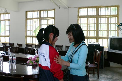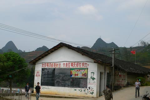 Photo Stories - April 2011 - Inspection in Baise City area of Guangxi Province 美丽的靖西县城,靖西县是百色市的10个国家级贫困县之一 The beautiful town of Jingxi County, this is one of the 10 poorest counties in Jingxi  龙临初中的课间操 Work out between classes in Longlin junior high school  龙临初中的教师宿舍。在山区当老师,不仅辛苦,而且只能住在这样简陋的平房里 Teachers in the mountain area are not only with poor teaching condition, but also with simple living condition  龙临初中校长在给我们介绍贫困学生情况 The principal of Longlin junior high school showing us the poor living conditions of the students  老师带我们做家访 A home visit led by the teacher  贫困学生家里的卧室 A student’s poor living environment  头顶烈日了解学生家庭情况 We went to know more about the student’s family conditions under a hot day  果乐初中家访路上 On the way to visit the students’ families of Guole junior high school  父亲有精神病,母亲离家出走,果乐初中三年级的黄秀芬心理负担很重,但成绩却非常好,简阿姨鼓励她放下包袱,好好准备中考 The grade 3 Huang Xiufen, in Guole junior high school, is a very good student with high grades, despite of the fact that she is suffering from family set-back. Aunty Jane encourages her to prepare for the coming up exam  简阿姨和果乐初中的孤儿周小玉 Aunty Jane and orphan Zhou Xiaoyu of Guole junior high school  拉钩承诺:我们一起努力 Let’s move forwards to our future!  老师和志愿者一起步行去家访 Teacher and volunteers are walking to the student’s home  冬季的寒冷加上春季的干旱,今年的玉米生长迟缓,高度只有往年同期的三分之一 Because of the cold winter and dried spring, the corns are growing very slow this year. There is only 1/3 of the height comparing with the other years  安德中学一名学生的家 A student’s home of the Ande middle school  贫困学生家内部 The poor student’s home  虽然贫困程度严重,但是南坡初中的校风很好 Despite of the poor, the learning atmosphere in Nanpo junior high school is very good  南坡初中的大部分学生,因为吃不起食堂,每周从家里自带米、黄豆和腌菜打蒸,有些学生甚至是两人共用一个饭盒 Most students in Nanpo cannot afford to buy the food in cafeteria, they brought their own rice, beans and preserved vegetables and cooked them at school, or two students shared for one meal  学校免费提供给学生使用的蒸笼 School provides steamers for the students to use  锅炉和打蒸房 The “Steaming Room” with the equipments  赵丽玲从出生50多天开始就成为留守儿童,很多年没见过自己的父母,左边是靠捡垃圾将三姐妹一手带大的奶奶,右边是特地专程从美国回来参加这次考察活动的志愿者须慧中 Zhao Liling was brought up by grand mom since she was 50 days old, and did not see her parents for years now. The grand mom is collecting garbage to make a living, and raising her 3 grand children. The other lady in picture is a special volunteer Ms. Xu Huizhong from USA  为了边陲壮家的孩子更壮,这是位于县城里的靖西县中学(高中)的图书馆 This is the library of Jingxi high school. It helps these “ Zhuang Race” children to improve their knowledge  |