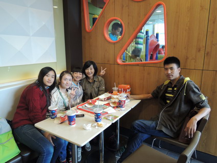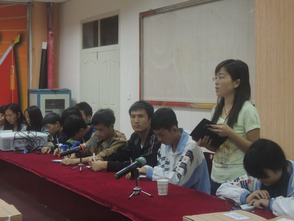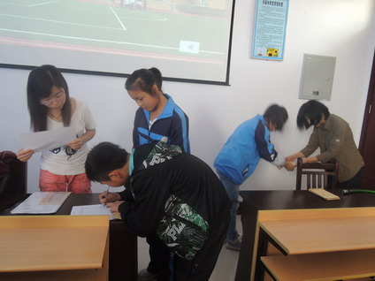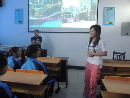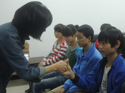 Photo Stories – Fall Semester 2013 – Qingchuan County, Sichuan Province 木鱼中学:发放助学金并请学生签收 Sponsorship funds are being presented at Mu Yu Middle School. The student in the foreground signed his receipt.  志愿者张桂芝姐姐告诉孩子们:贫困不可怕,我感恩上天给我磨炼的机会 Big sister volunteer Zhang Gui-zhi tells the children that poverty is not to be feared, she is thankful to have a chance to experience this challenge in life.  北大的志愿者高大哥和木鱼孩子们交流 Big brother volunteer from Peking University leads a discussion session with Mu Yu Middle School students.  在青川中学的会议室和孩子们见面 Students and Tomorrow Program volunteers gather in the meeting room of QingChuan High School.  谈话结束后,孩子们把会议室整理好,恢复原状 At the conclusion of the session the students clean up, and the meeting room is returned to its original state.  好喜欢张桂芝姐姐 I like big sister Zhang Gui-zhi very much, stated this student.  志愿者教孩子们学习的要领 A Tomorrow Program volunteer is teaching important skills in learning.  和孩子们有相同的成长背景,志愿者张桂芝姐姐告诉孩子们必须懂得感恩 Growing up with similar backgrounds as these children, big sister volunteer Zhang Guizhi tells these students they must know how to be grateful.  三锅中学孩子与简阿姨拉钩:一定要尽最大的努力准备中考 This boy at San Guo Middle School promised Aunt Jane that he will do his best in preparing for High school entrance examination.  我是不是很萌、很可爱?! Just a thought, am I cool and cute?  三锅中学的孩子们 San Guo Middle School students.  下了一夜的雨天刚微亮,三锅中学的全校学生已经在操场跑步了 After a rainy night, at the break of dawn the students of San Guo Middle School are already running on the school’s track field.  早上的三锅乡街上空无一人,我们在路边等大巴前往关庄 We are waiting for the bus to Guan Zhuang. The streets of San Guo Village is empty of people this early in the morning.  关庄中学的孩子们进步最多,为他们感到骄傲 Really proud of the San Guo Middle School’s students because they have made great improvement in school  她读着写给广西同学们的信,还捐给他们一百元 A letter is read addressed to the students of Guangxi. Included in the letter is 100 Yuan donation from her.  志愿者张桂芝姐姐的成长故事激励了孩子们,她是孩子们最好的榜样 Big sister volunteer Zhang Gui-zhi tells her story of growing up. Her story is an inspiration to the students and provides an excellent role model for them to follow.  关庄中学的初二学生们 The 2nd level junior high students of Guan Zhuang Middle School.  初三学生开始感到中考的压力了 The 3rd level junior high school students of Guan Zhuang Middle School. They are already feeling the pressure of the anticipated high school entrance exam.  重新记下简阿姨地址和电话号码 Aunt Jane’s address and phone number are recorded by these students.  青川一中有一批高三毕业生,也有一批从木鱼、关庄、三锅考上来的高一学生 A mix group of pupils are gathered together for this class session. The students are from Qing Chuan 1st High School, and three middle schools; Mu Yu, Guan Zhuang and San Guo.  高中生的一天很长,早上六点半直到晚上十点半,很辛苦。教他们挺直坐好,放松肩膀,提升能量和效率 Its been a long day for these students. The day started at 6:00am and will conclude at 10:30pm. In this picture they are being coached on good sitting posture. Its hoped that this will enhance their energy and efficiency.  教高中生快步走路的减压方式,即使是在夜里身体已经很疲惫也要坚持 Aunt Jane is conducting a session on how to relieve stress by using a walking technique. Though it is late in the evening and the students are tired, she encourages them to persist through the night.  简阿姨,谢谢你回答我的问题,我会照你的办法去做,我知道有些问题是急不来的 Aunt Jane, thank you for answering my questions. I will follow your advice even though I know sometime problems cannot be solved quickly .  志愿者姐姐和两位青川职高学生 A big sister volunteer with two students of Qing Chuan Vocational School.  举杯祝贺我们的大学毕业生找到工作,他们是从青川走出来的第一批真爱明天大学生 Pictured are the first group of the Tomorrow Program’s university graduates. A toast is made for these graduates fond their jobs.  国庆期间在成都与我们的大二学生在肯德基聚餐 During the National Holiday, Aunt Jane and these 2nd year University students in chengdu area enjoy a meal at a Kentucky Fried Chicken Restaurant.  请大一学生杨明强吃人生第一份牛排餐,祝贺他考上四川大学 Yang Ming-qiang is treated to his first ever steak dinner. We congratulate him as a 1st year student at Sichuan University.  |