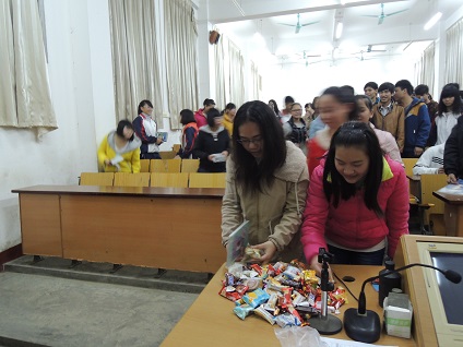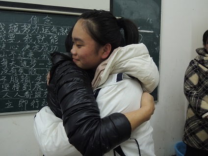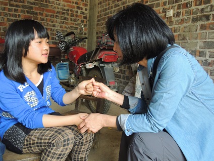 Photo Stories – Spring Semester 2014 – Jingxi County, Guangxi Province 靖西一中的孩子很高兴我们又见面了 Children of Jingxi High School are very happy to see us again.  靖西一中女孩和大家分享她今天的感动和感恩 The student of Jingxi High School shares with us regarding what made her feel grateful today.  志愿者大姐姐教高中生们学习方法 “Big sister” volunteer teaches high school students the methods of studying.  靖西一中的孩子们 The children of Jingxi High School.  谢谢TCL多媒体公司的林阿姨李阿姨带来的糖果,为大家补充能量。 Thanks to Auntie Lin and Auntie Li from TCL Multimedia Company, who brought candies as energy supplements for the kids.  TCL多媒体公司的林阿姨和天津泰达一小的李老师在黑板上写下:决定一生成就的21个信念,让孩子们抄在笔记本里。 Auntie Lin from TCL Multimedia Company and teacher Li of Taida 1st Primary School in Tianjing wrote on the black board, the 21 beliefs to make a successful life. The children copied these beliefs on their notebooks so they could remind themselves later.  她的家境已好转,谢谢她主动让出受助资格 We were deeply touched when she told us that her family financial condition has improved, and that she was willing to give her share of financial aid from Tomorrow Program to other needy kid.  志愿者和靖西一中孩子们 Volunteers and the children of Jingxi High School.  家访路上 On the way to visit families.  学生的家 A student’s home.  乖巧的孙女是爷爷的希望 The lovely and bright granddaughter is the hope of grandpa.  TCL多媒体公司的林阿姨为学生们放映励志短片《老鹰和鸡的故事》 Auntie Lin from TCL Multimedia Company shows a short video movie (The story of Eagle and Chick) to encourage the students.  天津泰达一小的李老师教孩子们自立、自强 Teacher Li from Taida 1st primary school teaches the children about self-reliance.  从魁圩孩子们整洁的外表看得出她们家境艰难吗? From the clean and tidy appearance of the Kuixu Junior High children, can you imagine they are from poor families?  天气还冷冷的,但学校没有热水,学生只能用冷水洗头 The weather is still cool. Without hot water at school, the students wash their hair with cold water.  墙上贴满了奖状,孩子是家里的希望和骄傲 The wall is filled with award certificates. The child is the hope and pride of the family.  家里虽简陋但却很干净 The home is shabby, but is very clean.  学生驼背的奶奶从地里背回大包菜叶养猪 Humpback Grandma carries a large bag of scavenged pieces of vegetable from the field for feeding pigs.  志愿者做家访记录 A volunteer recording a family visit.  志愿者下车后再走许久才到达学生的家,和奶奶合影留念。 After a long ride and walk, we arrived at a student’s home. A volunteer took a picture together with Grandma for keepsake.  哭泣的母亲--孩子父亲已经失踪6年,生死未卜。 Mother crying over her child’s father who disappeared 6 years ago, his fate is unknown.  在南坡初中食堂和真爱明天孩子谈话 Talking to the children of the Tomorrow Program in Nanpo Junior High’s cafeteria.  专心听讲 Listening attentively.  点燃孩子学习的动力,认识自己的价值。 Igniting the children’s motivation for learning, and teaching them on how to recognize their own value.  天津泰达一小的李老师和学生交流 Teacher Li of Taida 1st primary school in Tianjing chatting with the students.  临别时,初三的男孩充满信心的说:简阿姨,我们下学期靖西一中见!并拉钩承诺 The 9th grader, full of confidence, says at the farewell, "Auntie Jian, we shall meet again next term at Jingxi High School." They make a sign of keeping a promise.  他因家境好转主动让出受助资格,说是要让爱传递。我们约定以后的座谈他仍列席,永远是真爱明天的学生。 His family condition has improved, he says that in order to let love go around, he will give his share of financial help to other student, but would like to attend our sessions as before. He also says that he is our student forever.  上海志愿者金先生抽空参与助学活动 Mr. Jin, a volunteer from Shanghai takes time to participate in Tomorrow Program activities.  孩子的便条上写着他的担心:如果我考不上高中的话,这几年的助学金是不是就浪费在我身上了? A note from a child on his worry, "If I cannot pass the entrance exam and get into high school, the sponsorship expenses for the past few years would be wasted by me?"  龙临家访 A home visit in Longlin.  学生的爷爷奶奶 A student’s grandpa and grandma  微笑的爷爷眼里含着泪水 A student’s grandfather is smiling with tears in his eyes.  不知这个孤儿的瓦房还能支撑多久? How long can this orphan’s house stand ?  发放助学金 Giving out sponsorship assistance.  白发驼背非常瘦弱矮小的奶奶,腰后插着一把镰刀,刚从地里背回几十斤重的豌豆。 The white haired and hump-back grandmother with a sickle still in the back of her waist, is very thin and weak. She just carried back home 20-30pounds of beans from the field.  孤儿的奶奶用沾满泥土的手檫着眼泪:儿子没了,孩子妈妈也没了....简阿姨安慰她:奶奶你还有个乖巧懂事的孙女。 An orphan’s Grandmother swipes away tears with her hands covered with mud, "My son has gone. The child’s mother has gone.…" Auntie Jian comforts her, "Grandma, you still have your lovely, clever and understanding Granddaughter."  临别时奶奶拉着简阿姨的手久久不放 Grandma takes hold of Auntie Jian’s hand for a long time without letting go, at the time we say our goodbyes.  她忍着泪水告诉我们:爸爸死后,妈妈自杀.... She tries to hold back her tears and says to us, "After papa pasted away, mother c