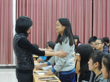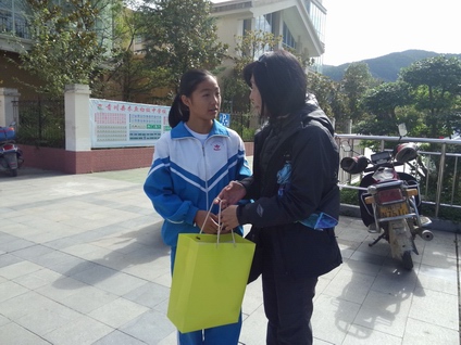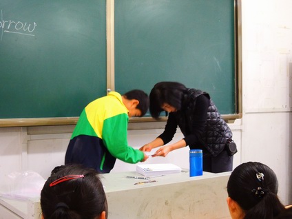 青川中学的学生站起来提问时一着急就满口四川话 Whenever the students at Qingchuan High School were anxious to ask a question, they spoke in the local Sichuan dialect.  这学期开始我们在青川只剩下青川中学和青川一中两所高中了 During this semester, our program was only realized in Qingchuan High School and No.1 High School.  今年从木鱼、关庄考上青川中学和青川一中的高一学生将是我们在青川的最后一批学生 This year the Muyu, GuanZhuang and Qingchuan No.1 High School’s grade 10 students will be in our final program in Qingchuan County.  晚上18:30开始座谈,青川中学高三学生猜想我们肯定没时间吃晚餐,就很贴心地给我们带来了热牛奶 The seminar started at 6:30 PM. Grade 12 students from GuanZhuang High School thought that we might not have had dinner yet, so they brought us warm milk.  青川一中的孩子们 Students in Qingchuan No.1 High School.  青川一中的高三女孩主动站起来用四川话告诫同学们要感恩惜福好好努力,简阿姨虽只听懂一小部分但从她颤抖的声音中感受到了她的真诚 One grade 12 student from Qingchuan No.1 High School used Sichuan dialect to tell the other students that they should study hard to show theirgratitude. Although Aunt Tricia could only understand a little bit of her dialect language, she could feel her sincerity from her trembling voice.  安慰哭泣的青川一中女孩 Comforting a crying Qingchuan girl.  青川一中学生从她的助学金捐出二百元给木鱼初中仅剩的一位”真爱明天”特困女孩 A student from Qingchuan No.1 High School donated two hundred yuan to a Muyu junior high school student who was the only “extremely poor” student remaining in the "Tomorrow Program”.  丈夫最近刚刚车祸去世,单亲的妈妈年纪尚轻应有足够工作能力,家里新盖好的楼房装修精致家具齐全,说明家庭条件良好,因此我们没有接收她两个孩子的申请 Her husband recently died in a car accident. Although she’s a single mother, she’s still young and capable of working. Her house was new and well furnished which evidenced her family is in good condition. Therefore, we did not accept her two children.  学生的爷爷下山带领老师和志愿者回家做家访 The student’s grandfather came down from the mountain to lead the teachers and volunteer for the home visits  家里养了两头猪,奶奶连夜剁好这堆红薯叶准备做猪食 This family owns two pigs. The grandmother cut this pile of sweet potato leaves last night for the pigs.  奶奶叙述家况老师当翻译,土房的外墙已有多处裂缝 The grandmother told us her family situation and the teacher translated for us. The mud construction of the house had many cracks.  炉灶上两锅刚煮好的猪食 Two pots of hogwash on the stove were just cooked.  这位学生的爷爷是退休老师,靠自己的退休俸供孙子上学 The student’s grandfather was a retired teacher. He supported his grandchild education with his pension.  房间地上堆积着刚收成的红薯 Sweet potato harvest is piled on the ground.  狭窄陡峭湿滑的山坡小径是通往学生家的唯一通道 A narrow, steep, slippery sloped trail is the only passage to the student’s home.  年迈的奶奶是家里的主心骨 The old grandmother is the heart of the family.  奶奶的儿子轻微智障至今未婚,十三年前他们领养了一个女婴,现在成为“真爱明天”的学生 The grandmother’s son is somewhat retarded and unmarried. They adopted a baby girl thirteen years ago who is in the "Tomorrow Program" now.  下两初中的男生宿舍干净整齐,折叠成豆干的棉被显示了学校严格的管理以及学生良好的精神面貌 XiaLiang Junior High School’s dorm is very clean and tidy. The folded quilt showed us the exacting management of the school and how well behaved the students are.  下两初中依山而建,午饭时间学生们拿着碗到食堂打饭 XiaLiang Junior High School was built on a hill. At lunch time students bring their own bowl to the cafeteria.  下两初中的孩子们纯朴可爱 Students at XiaLiang Junior High School were true and lovely.  主动站起来回答问题 They took the initiative to stand up and answer questions.  聪明可爱的初一男孩主动站起来回答问题 A smart and handsome grade 7 boy who stood up to answer questions.  孩子们听简阿姨说故事,脸上是会心的笑容 The children were listening to Aunt Tricia’s story with smiles on their faces.  在下两初中发放助学金 Presenting grant at XiaLiang Junior High School.  下两初中座谈结束,孩子们、老师、志愿者快乐合影相约下学期见 Children, teachers and volunteers took photos after the seminars at XiaLiang Junior High School. They made a promise to see each other at the next semester.  上两乡位于大巴山脚,比下两乡距离县城更远更偏僻,孩子们的校服和下两初中一样 ShangLiang Town is in the foothills of DaBa Mountain, farther and more remote than XiaLiang Town, but the two school’s uniforms are the same.  上两家访途中,老师的车子深陷泥淖中,车前方的保险杠也断裂了,不知保险公司能否赔偿 On the way to the home visits, the teacher’s car was mired in the muddy road and the front bumper was damaged. We are not sure whether the insurance would cover the damage.  老师借来附近乡民的铲子挖泥 The teacher borrowed a shovel from the village folks.  齐心协力推车 Everyone endeavored together to push the car  哪儿有房子?好不容易才找到学生的家是在对面坡顶上的树林后边 Where is the student’s house? Finally, we found the house and it’s behind the woods on the opposite side of the hill.  学生的家已垮塌,全家住在奶奶的土房里。患有精神病的妈妈热心端出核桃请我们吃,奶奶说她的精神病每天发作3、4