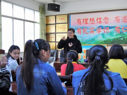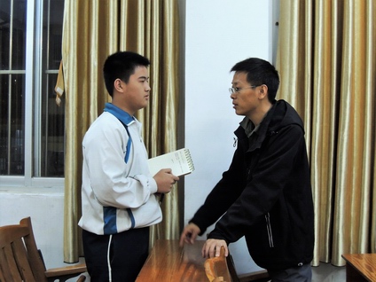 北大志愿者唐老师的同学王老师在凌云县委任职,他告诉民中学生复习和反复背诵的重要性 Mr. Wang who works in the Lingyun county, is the classmate of the volunteer Mr. Tang from the Beijing University. Mr. Wang told to the students that reviewing & memorizing the lesson learned is very important .  主动坐前排的学生较勇于发问 The active student sits in the front roll has the courage to ask questions.  民中学生踊跃回应我们提出的建议和要求 The Ethnic Middle School students response to our recommendations & requirements with enthusiasm.  北大唐老师教民中学生学习的方法 Mr. Tang of the Beijing University teaches the students the method of studying.  民族中学的孩子们 The students of the Ethnic Middle School  民中座谈结束后,他留下来请教唐老师学习上的问题 He stayed behind to ask Mr. Tang about the learning problems after the class discussion.  发放助学金并请学生签收 Distributing the sponsorship funds & request the students to sign the receipt  唐老师的老家环境条件和凌云相似,他和孩子们分享自己的成长经历 Mr. Tang’s home town condition is very similar to this county, he shared his growing up process with the students.  逻楼初中的孩子们 The junior students of Luolou  学生的家在很陡的山坡上,还好村里的路已硬化,否则下雨将寸步难行 A student’s home is located in the very steep slope, luckily the road is dry, otherwise it will be difficult to walk after the rain.  通往学生家的石头路 The rocky road leading to the student’s home  腿脚不便的爷爷读过书,注重孩子的教育 The crippled grandfather had studied before, therefore he knows the importance of the student’s educations.  凌云县文化底蕴较深厚,家家户户供奉“天地君亲师”,贴上对联 In Lingyun County, their culture is very deep, every family dedicated to "heaven-earth-monarch-parents-teacher" labels on the walls of their houses.  家虽清贫,但奶奶把它打理得很干净温馨,爷爷腿脚不便 Even though they are poor, but the grandmother keeping their home clean & warm, the grandfather is disabled.  山上的学生家 One of the student’s home located up on the mountain  学生的奶奶 The student’s grandmother  逻楼女孩自告奋勇上前和大家分享她这学期的目标和计划 The Luolou girl volunteered to come forward & shared her goal & plan for this semester.  孩子们认真记下谈话重点 Students took the important notes.  逻楼初一女孩说小学没有学习过英语,现在觉得英语和天书一样,怎么办? This Luolou girl said that they did not learn English in their elementary school, she felt English is very difficult; like a book in heaven, what can she do?  英语语法让初中生们深感头疼 The English grammar is a headache for the junior high students.  天雨路滑,小心滑跤 The slope is very slippery after the rain.  加尤山上家访 The home visit up in the mountain of Jiayou  学生家虽是精准扶贫户,仍无力改造破旧的木房 Even though the student’s family is considered a "Precise Poverty Alleviation" family which needed help, but remains unable to rebuild this old wooden house.  屋况 The house’s situation  学生爸爸腿残疾不能干重活,妈妈轻微智障还能下地干活,家里无经济来源 The student’s father is disabled, he cannot do any heavy work, the mother has a mild mental disability but she still can do some farm work, Their family does not have any source of income.  学生小时候妈妈就跑了,爸爸(图右)患有精神病和癫痫症无法工作,家境非常贫困,靠低保为生 This father suffers from mental problems and epilepsy, so can’t work. The student’s mother ran away while he was very young. This family is very poor, they can only rely on the low income supplement program to make their living.  村里绝大多数人家都已建起砖房,与学生家破旧的木房成强烈对比 Most of the people in the village had rebuild brick houses, there is big contras between the student’s old damaged wooden home & the new homes.  唐老师以自己跑马拉松的经验告诉加尤的孩子们求学贵在坚持 Mr. Tang shared his running marathon experience with the students in Jiayou Junior High school, said that the students have to be persistent in their studies.  加尤初中的孩子们 The students in Jiayou Junior High School  聚精会神 The students are concentrating in listening.  勇敢提问 Asking questions bravely  简阿姨,我们下学期见 Saying goodbye to Auntie Jane, will see her next semester.  学生家长请我们品尝自家种的茶叶 The student’s parents invited us to taste their house tea.  凌云产茶叶,学生爸爸没有出外打工,以种些茶叶为生 Lingyun county produces tea, the student’s father does not go out to work, he grows tea to make their living.  学生妈妈下厨做菜想留我们吃饭,我们婉拒了 The student’s mother is cooking & inviting us for a meal, we declined it politely.  多年前在政府补助下将木房改建成砖房,以种些茶叶为生 This family rebuild their brick house with the government support program many years ago, now he grow tea for their living.  民中孤儿和奶奶(右二)住在县城姑姑(右一)家 This orphan & his grandmother (second right) is living with his aunt’s family (first right) in town.  教育局人员带我们参观凌云高中未完成的操场 The Education staff show us around the unfinished high school playground in Lingyun Senior High School.  唐老师告诉高中生们在学习上遇到困难时要多思考,想想是否应该改变学习方式和方法,以提升效率和成绩 Mr. Tang told the high school students on how to solve problems if they encounter any difficulties in the learning process, they should think in different angles to see if they need to change their methods & ways 