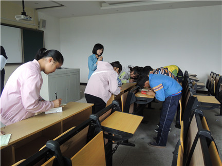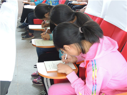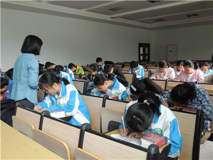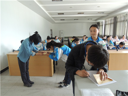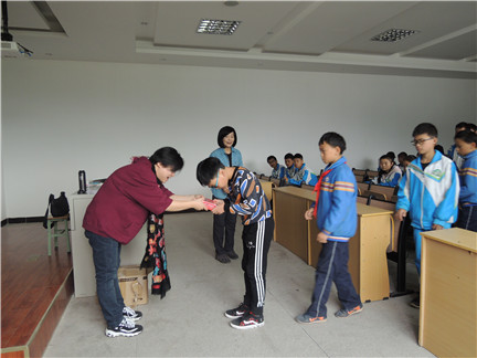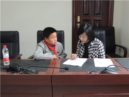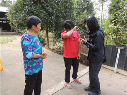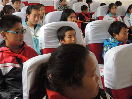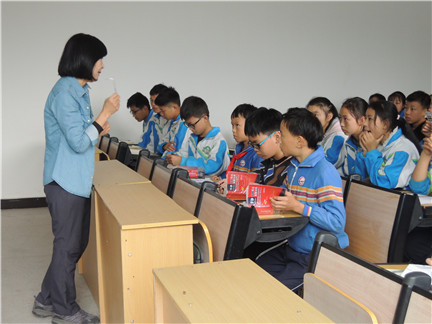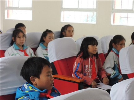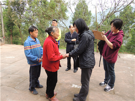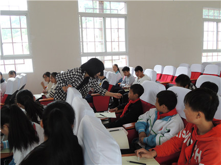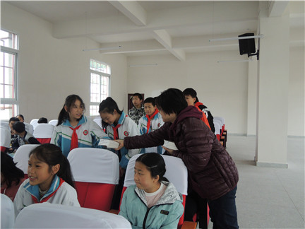 来自北京的谢阿姨受上大学儿子的委托专程到南江送英汉词典给孩子们 Auntie Xie coming from Beijing upon request from her son studying in the university delivered the English Chinese Dictionary.