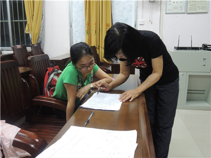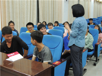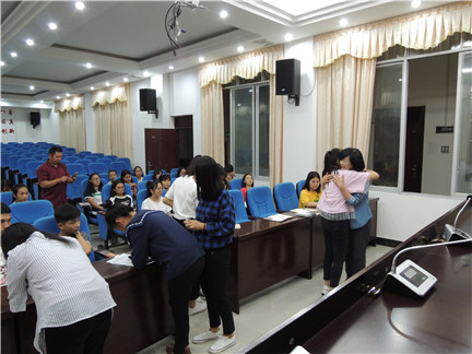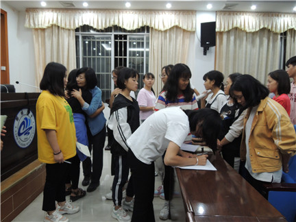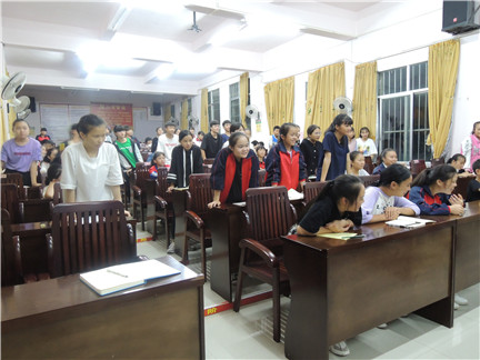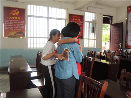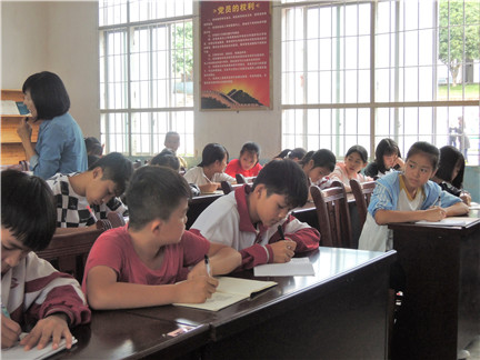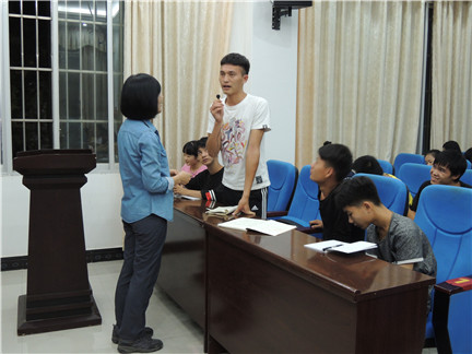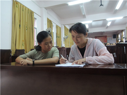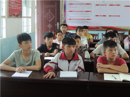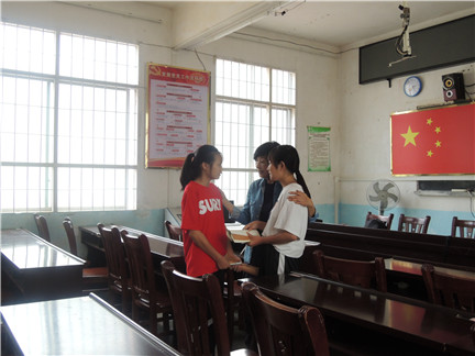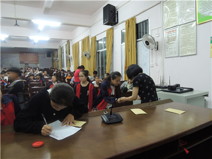 高中生领了助学金后在签收表上签字 Those students upon receipt of the grant need to sign as acknowledgement.  那坡高中的视听教室已另有安排,我们第一次用学校的会议报告厅和学生座谈 The audio room of Napo Senior High School was occupied. We have to use the meeting room to hold the seminar.  每学期的见面是那坡高中学生们最期待的时光 Senior high school students of Napo anticipate the meeting in every school term.  高三同学请简阿姨再给大家讲述一遍几年前教过他们的学习要领 The high school grade 3 school students requested Auntie Jian the way of key learning which she taught coup years ago.  高二的女孩问道:自己无意中的言语对同学造成伤害,现在饱受非议,该怎么处理? The grade 2 student is asking the way of handling the criticism from another student who has been hurt by her non intentional wordings.  从民族中学、龙合初中和定业初中考上高中的“真爱明天”孩子们,逐一写下他们的名字和新班级