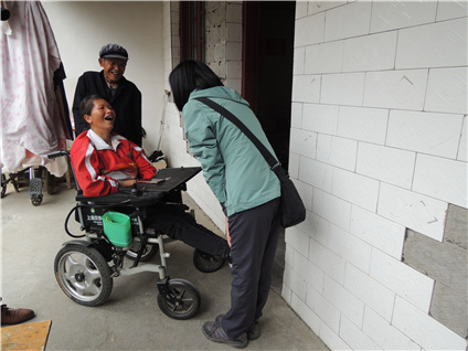 即将大学毕业的“真爱明天”学生赵伟抽空参加文县助学 Zhao Wei, a student of "Tomorrow Program" who is about to graduate from college, took time to participate in Wenxian County EducAid  赵伟哥哥告诉四中学生们自己的成长经历 Brother Zhao Wei to the No.4 Middle School students is growth experience  文县四中的“真爱明天”孩子们约有四分之一高中生,其余为初中生 About one fourth of the “tomorrow Program” students of Wen County No. 4 Middle School are senior high students, the balance are junior high students  学生问患有天生眼疾的赵伟哥哥有没有想过放弃求学 Student asked brother Zhao Wei who has congenital eye disease did he ever think of not going to study at school  四中高二学生哭着说已经很努力但成绩却没进步,看别的同学好像很轻松,心里感觉很难受很迷茫,怎么办? This 2nd year senior high student of No.4 Middle School said in tears that she had worked very hard but her grades didn’t improve, whereas it seemed to be very easy for the other students; she felt very unhappy and confused about what she should do?  右腿受伤高位截肢的学生爸爸告诉我们家里近况,学生妈妈(右一)正好给工地上的爸爸送饭来 The student’s father, who had a high amputation on his right leg after injury, told us about the situation at home; the student’s mother (first from right) happened to bring the father ‘s meal to the construction site  全家目前还住在破旧的土房里,新房虽已动工,但因没有经济来源,不知何时才能完工 The family is still living in a dilapidated earthen house; although work on the new house has started, it is uncertain when it will be completed because there is no source of income  学生家长不在家,5.12地震后政府补助加固老旧的木房 The student’s parents were not at home; after the 5.12 earthquake, the government subsidized the strengthening of the old wooden houses  四中老师(左)向学生爸爸说明我们的来意 Teacher of No.4 Middle School told the student’s father the purpose of our visit  学生家的平房是5.12地震后重建的,当年的救灾帐篷至今留着当储藏室 The student’s bungalow was rebuilt after the 5.12 earthquake; the left over disaster relief tent being used as storage  家访路上 En route to home visit  学生家没人在,前面的砖房尚未完工,后面的木房也还没有拆除 No one at the student's home, building of the brick house in the front has not been completed, the wooden house in the back has not been demolished yet  附近邻居告诉我们:学生的妈妈聋哑且有精神病,全靠爸爸在附近打零工撑起这个家 Neighbors told us that the student’s mother is deaf and dump, and is mentally ill, the family relying on the father to work part-time nearby home to support the family  赵伟哥哥帮忙发放助学金给文县四中的学生 Brother Zhaowei helped hand out the EducAid to students of Wen County No.4 Middle School  赵伟哥哥用自己的经历说明:没有困难是不能克服的 Brother Zhaowei used his personal experience to explain that there is no difficulty that couldn’t be overcome  四中的孩子们都很淳朴很认真 Students of the No.4 Middle School are very unsophiscated and earnest  赵伟和文县一中的高中生们交流 Zhaowei interacting with senior high students of Wen County No.1 Middle School  高三学生向赵伟发问 3rd year senior high student asked questions of Zhaowei  好开心 Very happy  举手的全是今年的高三毕业生,还有五十几天就要高考了 Those who raised their hand are 3rd year senior high graduates of this year, only 50 plus days left before taking the national college entrance examination  高三学生和大家分享去年她记下的申请国家助学贷款办法 3rd year senior high student shared the notes she took down last year on how to apply for national students loan  另一个学生分享大一学生注意事项 Another student shared matters for freshman to pay attention to  学生的妈妈因车祸脑部受伤而丧失语言能力并且双腿瘫痪,她以手机短信方式与我们交流 The student’s mother lost her talking ability due to brain injury due to car accident, her legs were also paralyzed; she communicated with us via cell phone SMS  家里唯一的劳动力是孩子们的继父,我们资助了她的大女儿三年,如今大学都快毕业了 The only workforce in the family is the student’s stepfather, we have given her eldest daughter EducAid for three years, and she will soon graduate from university  现在读高一的小女儿也是“真爱明天”的学生 The younger daughter now a 1st year junior high student is also in the “Tomorrow Program”  学生的爸爸患有肺病不能干活,靠低保和妈妈在附近打零工撑起这个家 The student’s father is suffering from lung disease and can’t work, relies on rural minimum living security funds and the mother to work part-time near the home to support the family  山上宁净、淳朴的瓦房小村庄点缀着春天美丽的梨花和油菜花,这世外桃源让我们赞叹不已。只是山高路远,我们住在这里的学生回家一趟真不容易 The quiet and simple tile-roofed house small village on the mountain was ornamented with beautiful spring pear and rapeseed flowers; this paradise makes us amazed, except that the mountain is high and far away, which made it not easy for the students living here to make a trip back home  忍不住停下脚步拍下眼前美景 Couldn’t help to stop and take a snap of the beautiful scenery  我们的车沿着这条山路开上山做家访,这个高度与山下的县城约有一千米的落差 Our car went along this road up the mountain for home visits, which has a drop in elevation of 1,000 m with the town at the foot of the mountain  第一天一中的座谈结束后,高三女生哭着问道:离高