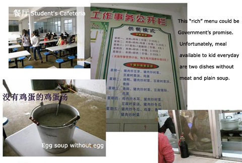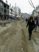 • The true feeling of the Journey of Qingchuan – Cui Dan (Tianjin), March 27 to April 3, 2010 Boundless hills, smoke rising from chimneys, bright yellow vegetable fields, I was excited and joyful to join Aunty Jane, two volunteers from Beijing & one from Chengdu to start our journey to Qingchuan. I felt very good to enter into the mountain area the first time, although the road was rough but it did not discourage us to ride on. The distance from Chengdu to Qingchuan is quite long. While we travel we had to ask for directions, it took us near 6 hours to reach the Sanguo village of the Qingchuan County. During the 6 hours, through the conversation with the skillful driver, we had a different kind of understanding of the beautiful scenery in front of our eyes. We discovered that the peaceful lake was the reincarnation of the quake lake; the growing little aquatic plants, were the reincarnation the vigorous tall and straight big trees; the partially visible still objects in the lake were the reincarnation of the roof tops of houses ......Yes, underneath this beautiful lake, it used to be a busy town. A cool breeze flowed by had made some waves in the lake. We hold our breath to listen, we seemed to hear the life summon! On our way to Qingchuan, we encountered bumpy road condition, landslide, traffic jam etc..... However, regardless of all difficulties, it did not prevent us to go forward!  Beautiful quake lake Street of Muyu village On road to family visit Last week, my friend bought the roasted sweet potato from the peddler again, after she paid, the farmer reached in his pocket & took out 2 brand new RMB100.00 bills (200 Yuan) together with the proceed of the sweet potato sale & told my friend that it was the donation to support one orphan of the “Tomorrow Program”. During the day time, we made the family visits. The earthquake wiped out the entire Qingchuan County. Although two years had passed by, but the road conditions were extremely bad. It was disappointing to see there were no nice roads in Sanguo, Guanzhuang & Muyu. The gravels, the bricks, the transport vehicles, the construction machine were all over the entire county just like a giant work site. Even the Sanguo & Guanzhuang had the preliminary appearance, but the dust & mud in the area gave us headaches. On the road to the family visits, there were two kinds of road conditions, dust flying every where or mud covering the roads. The warm sun is supposed to be the treasure of Sichuan, but this treasure is not welcome by every one of us, because its appearance meant we will turn into a giant vacuum. When the vehicles speed pass us, the dust on the road will flow high in the air & the dust will cover us all over. We could not see any thing but yellow dust, the houses; the automobiles vanished in front of our eyes in split second just like magic. We had to hurry & cover our noses & mouths, bend down to walk forward. The shower & drizzle are very often in here, the smoke flow from the kitchen chimneys, the light fog & breeze actually had its own character and style look like a peaceful scenery; however the muddy mountain road increased our worries. The mountain road was rugged & dangerous that made our journey very difficult. It was just like walking on the hundreds of broken crag mountain ranges. Our children grow up in the city were difficult to imagine how difficult the remote road conditions were before they reach this area. On top of the already rough road, a whole night’s rain made the mountain road even muddier to withstand. We curl up our pants, walk in tippy toe cautiously. The road condition was so difficult to bear. Such mountain road was difficult as one climbing up to the blue sky. Comparing to our students in the area, they said the road we are using was not so difficult to them. The small alley they use on daily basis is much more dangerous & steep; they use it because it can save up half of the time. No matter where the home of these students situated, on the mountain or on the near by road, there are still homes not rebuild completely; some of the student still live in homes made of awning or cardboards. Even if they live in a new home, some family still had to bear the pressure of repaying the loan to rebuild there home. The country only provides 1.6 thousand Yuan subsidies for a three-person family (four person family will have 1.9 thousand Yuan subsidies); the remaining cost of rebuilding their new home was obtained from the bank. In Sanguo village, one family told us that they felt very lucky even they have to deal with the pressure of the bank loan repayment. On March 29, the teacher of Sanguo Middle school leaded us to visit the home of a 3rd grade 1st class senior high student Wang Wan Hong. When we arrive there, we were shocked, we could not believe our own eyes; her home does not even have door & windows, several worn-out planks stand vertically used as the front door, a straw mat hanging to block off the wet & cool air from the outside. I really did not know how this can be called a house & how people lives inside. Wang Wan Hong’s mother welcome us when she saw us arrived. When we talked & gave our regards to her, she just put up a silly smiling face. We found out that she is mentally disable, therefore, she did not understand us at all; the family’s livelihood is entirely depends on the father. He usually works odd-jobs locally; in addition they also needed to look after their old grandfather too. At this moment, the grandfather walked out & did not speak much, but we can see he was excited to meet us. Upon his permission, we enter the room, it was very dark, did not have any furniture, only some sundry items as if some old antiques dig up from the ground, worn-out & just lying around disorderly & very dusty. Looking at Wang Wan Hong’s very poor family, mentally ill mother, old grandfather, we all feel very sad. It was hard for us to imagine, how could Wang Wan Hong bear the senior level gra