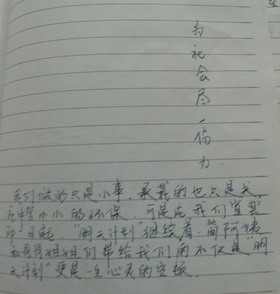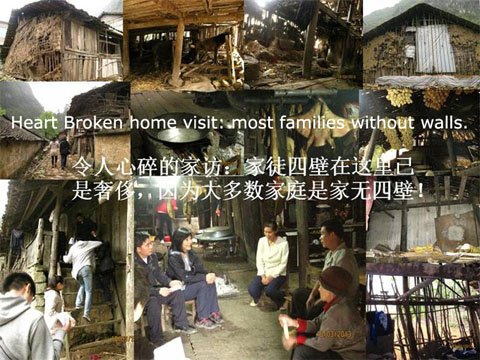 • True Love is Priceless – Wenjuan Wu (Beihai College of BeiHang University), October 29, 2012 I am glad that I had the opportunity to travel to Napo and Jingxi county in Guanxi to deliver education grants, as part of the “Tomorrow Program”. I will treasure these memories. This was the first time I had ever volunteered. Although it was only for ten days, the experience has affected me deeply. I witnessed firsthand both the bad and the good in this world. I came away glad that love exists. “Tomorrow Program " made me realize the dire conditions some people live in. I came to understand why Aunty Jian insists on visiting the student’s home, and to chat with them face to face. October 17, 2012 was the first day of our journey. Our group left at 8 in the morning, and arrived at our first stop, Napo county, after six hours in the car. As soon as we had unloaded our luggage, Aunty Jian assigned us our tasks. My responsibility was to teach the kids how to use the English-Chinese dictionaries and to record transcripts of each home visits. To my surprise, the bright middle school kids I worked with learned the lessons within minutes. Aunty Jian was surprised and pleased as well. Her entire face lit up, and she constantly gave a thumb up to recognize and encourage each and every one of her “children”. I believe this was what Aunty Jian most wanted to see. Her biggest desire is to see the children make progress. Afterwards, Aunty Jian patiently told them the story of the “American Eagle”. She encouraged the children to overcome difficulties and to persist in their learning. If we hadn’t reminded her about the time, she would have gone on. She is always so selfless, much like a child, making us laugh. The core of our activities really began the next day following our talking in their “evening self-study classes” time. Aunty Jane told us "We must deliver the love of our donors into the hands of the truly needy children. We cannot waste a single penny from our donors. " "Excuse me Director, where do we go from here?" This was a question that the volunteers often asked. "This is the right path." We’d search in the direction that the Director had pointed. “Where is the road?” We’d often express our doubts. Yes, this is a photo from our journey. In these poverty-stricken villages, the students often lived in homes on roads that barely resembled roads. In these remote mountains, our initial curiosity eventually turned into despair. Here, even the health of the parents was considered a luxury for the students. Here, the grandmothers all had bent backs, even when they were standing up. Here, the road repairs were done by the women, because all the husbands were working in far-off places in order to support the family. Here, the children who remained lived for prolonged periods without ever seeing their father or mother even parents. They were used to cooking for their grandparents by grade three, used to doing all the chores around the house, used to cook a special mixing together food for the pigs, something city kids have never even heard of. But they loved to learn more than anyone else. Their persistence shocked me. I will never forget their innocent but determined looks. During the home visits, whenever I felt close to tears, I’d quickly bow my head in order to hide the tears from the people around me. Aunty Jian had told me that we must never let them feel as if we were pitying them. We need to let the children know that they are just like us, to encourage them to be strong, to encourage them to make progress. After ten consecutive days of volunteering, we had visited some homes of the students attending Napo and Jingxi Middle School. We came to understand the concept of the “tile-roofed house”, which a broken house covered by some tiles, of the “brick houses” which only a brick case, of the “big-pot of rice” in the cafeteria, and of the “extra-curricular sports activities”. This journey touched me deeply. I felt as though I had undergone a baptism. It was time for me to do something… Since its inception, “Tomorrow Program” has helped countless children in plight and despair. It has re-ignited their passion for life. It has shown them that the world is more beautiful because of their existence, that their kindness brings warmth to the world. After participating in this “Tomorrow Program” trip, I will vigorously promote volunteer activities at school, to encourage college students to actively participate in outreach organization, to persuade the people around me to help those less fortunate than us, so that our entire society can be filled with love and warmth. > Back to top