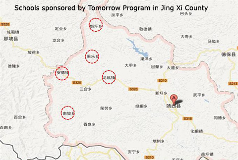 • Blog of Professor Zhang Haixia, Beijing University http://blog.sciencenet.cn/home.php?mod=space&uid=299&do=blog&id=682395 Love and hope: From Tomorrow Program - 5.12 earthquake relief report Another unexpected earthquake that leads to unexpected relief coincidence. This tear-jerking relief report presented by volunteers of Tomorrow Program who visited Guangxi on April/19. Mrs. Tricia Lin, person in charge of the Tomorrow Program and volunteer Mr. Li Zhongliang, student of Beijing University were participated in the disaster areas of Sichuan for the Spring school-aid activities. They were in the affected areas when earthquake happened! After the 4.20 earthquake, a new wave of fund raising is inevitably. Being an adherent of a rescue plan for 5 years, I am here to post and to share the relief report prepared by the volunteers. We need money for the disaster area but your love and continue supports are more essential. My tribute to Mrs. Tricia Lin.    Jing Xi County covering 8 towns and 11 townships, connecting Vietnam at the Southern area, situated at the southwest area of GuangXi province. 11 ethnic group including Zhuang, Han, Miao, Yao, 99.4% residents are Zhuang ethnic. Climate of Jing Xi County is Subtropical monsoon. Severe hot in Summer, mild in Winter, average temperature is 19.1 Celsius. Jing Xi County has lots of natural resource, including 250,000,000 tons good quality of Bauxite is the biggest mining development in Guang Xi province.               > Back to top