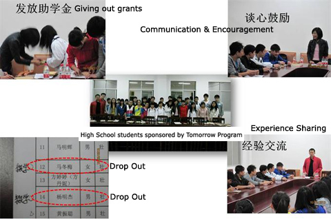• Visit Qingchuan again – Cui Dan (Tianjin), December 2010 Still remembered on May 12, 2008 at 14:28, the peaceful life of the people in Sichuan was broken by the big earthquake. Within minutes the enormous landslide, cracks on earth, tumbling rivers and streams flashed away many houses, destroyed roads, every thing collapsed! The rolling stones, the mud-rock slide, the quake lakes ......Qing Chuan County located in the most northern side of the Si Chuan Province, is within the Long Men Mountain fault zone; instantaneous the place became an isolated island, homeland was destroyed, people were separated & lost. At the time of the rescue effort, from old to young, from entrepreneurs to panhandlers, from leaders to commons, trillions of people focused on the disaster area, extended their helping hands to the victims. Trillions reach out with their warm heart to do what ever they can to help, as if they had enormous energy to make the dark & sad environment into a blue & bright sky. Numerous volunteers, foundations, charitable organizations went to the disaster area, it was the same time that, “Tomorrow Program” student scholarship foundation was form. It was initiated by Professor Chen Shi Yi of the Beijing University & Professor He Zhi Ming of the University of California, L.A. Branch together with the volunteers from China, Taiwan & USA. Ms. Tricia Lin is the CEO of the “Tomorrow Program” who is responsible for the implementation of all programs. After she learned of the Sichuan disaster, she had travel under the most difficult road conditions (steep hills, muddy & slippery roads) to reach the Qing Chuan County in Si Chuan Province to investigate and study personally with strict procedures to identify the 210 poor children from Sanguo village, Muyu townships & Guanzhuang village to be qualified for the student scholarship. The main purpose is to help them continue with their education in school. Beside the financial support, Auntie Jane also care & love them, helped them with their psychological problems after the disaster, let them feel that there is love in people’s heart & they will not be left out from the world. Therefore, many “Tomorrow Program” students call Auntie Jane “Aunty Jane” as she is one of their family members. Helping people will gain respect from others, therefore many friends enjoyed the charity work. A famous author Bing Xin once said, “People admire the present beauty of a blooming flower, but did not realize the bud underneath the ground, has struggled to grow with blood & sacrifice before the flower bloom.” It is very difficult to imagine the tedious & difficult works that we had done behind the “Tomorrow Program”, going into the mountain area, visiting schools and raising the scholarship funds etc. ......The tremendous work is often shared by only a few of our staff. The amount of work performed, the man power & the financial resources we used is equivalent to the monetary donations of a couple of Yuan to ten thousand Yuan received from the donors. Regardless of the difficulties, “Tomorrow Program” will continue persistently. Aunty Jane will organize the volunteers & personally visit the schools in the Qing Chuan County to meet the students at the beginning of each school semester. In October, 2010, when a friend heard th, at we are going to Qing Chuan to assist students again, he expressed his doubts to us, he wondered if the students still needed our help. At present, most of the charitable organizations left Si Chuan already, what kind of power leaded the “Tomorrow Program” to continue? Actually there is a simple reason: We not only wanted the poor student to continue their studies, but also hope that they will grow out of the earthquake darkness, make them feel responsible to the society, become a successful person in the future. “Tomorrow Program” never use the school marks to judge the students, we never demand them to enroll into famous university, do not hope that they will twist their conduct for this goal. We always tell the students: without the profound blue sky, may have the elegant white clouds; without the big ocean, may have the graceful creek; without the wild fragrance, may have green grasses. So long as one found their own good direction, own brightness & own sound, then life will certainly be splendid. To give others fishing net is better than to give a fish. To assist others to help themselves is our core principle & objective. Indeed, the bursary is essential. Without the bursary fund, the students will loss their chance to studies, without going to school, the student will not have the basic education for their growing development. Raising the bursary funds is the basic foundation of our work. But our main goal is not limited from there. At the beginning of each semester, Aunty Jane will make special arrangement to talk to the “Tomorrow Program” students for several hours; to educate them to find the value of life. Mr. Roy Luo once said that the countless wounds are life’s best thing, each wound symbolized one step forward in life. The legend said the thorn bird, is a strange animal in the southern hemisphere, it has the most beautiful sound in the world but only sings once a life time; from the beginning of its life, it is dedicated to find the thorn tree. Once it was found, it will strike his small body into one of the longest and sharpest thorns, while it is bleeding, it cry in tears, its crying sound is like it is singing the poignant and engaging song until it is exhausted & die. Every one listen to the singing of the thorn bird, God is also smiling in heaven. At the end every one paid the upmost final respect to the bird. Every one knew it took the deepest wound & pain to exchange for the finest thing in life! We have to constantly strive for our self-improvement. The thorn bird’s last song, is not the death elegy, it is the marching bugle! We hoped the “Tomorrow Program” will help 