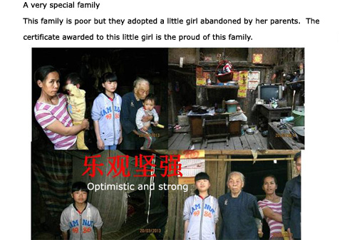 • Inspiration of love – Friends from Canada, August 2012 On April 16, 2012 I was very lucky to have the opportunity to attend the “True Love Tomorrow scholarship Program” spring visit to distribute the program’s grant to the students in Jingxi County of Guangxi province. I have learned a lot from the experienced volunteers. The ten days only visit, I really respect & praise those students; they live in such poor conditions and yet still work really hard. During the interview, I heard a lot of the students whose parents work outside their community may not be able to see each other once a year; I really felt sorry for them. One could slowly stock up the shortage in materials, but could not fill up the feeling of longing for their family to be closed by. No wonder one of the teachers said he was really touched whenever the volunteers from "True Love Tomorrow scholarship program" come to care for the students. I now have more understanding of the meaning of the two visits every year by this organization’s volunteers. It was very meaningful & important for me this year that I had a chance to join them. Although the students have many different growth stories, problems to face and solve, but with our Executive Aunty Jane’s encouragement and warm concerns, they are showing their true feelings & have self- confident about their futures. A girl came up to me saying: “Aunty, I wanted to be a volunteer just like you when I grew up.” I was very touched. Because of "love" we are together; to face any difficulties, we will be strong & have passion in life. Aunty Jane has ever ending stories, these moving stories affecting the students & also the volunteers interactively, it made me feel happy and grateful. A giver is also a receiver; it is never too old to learn. Hope that I will also have the opportunity to learn from Aunty Jane in the future, and let the love & passion continue on to the others. May these students have good health & happiness; wish them all the best when they grow up. Wish they could make some contributions in their community and the country in the future. > Back to top